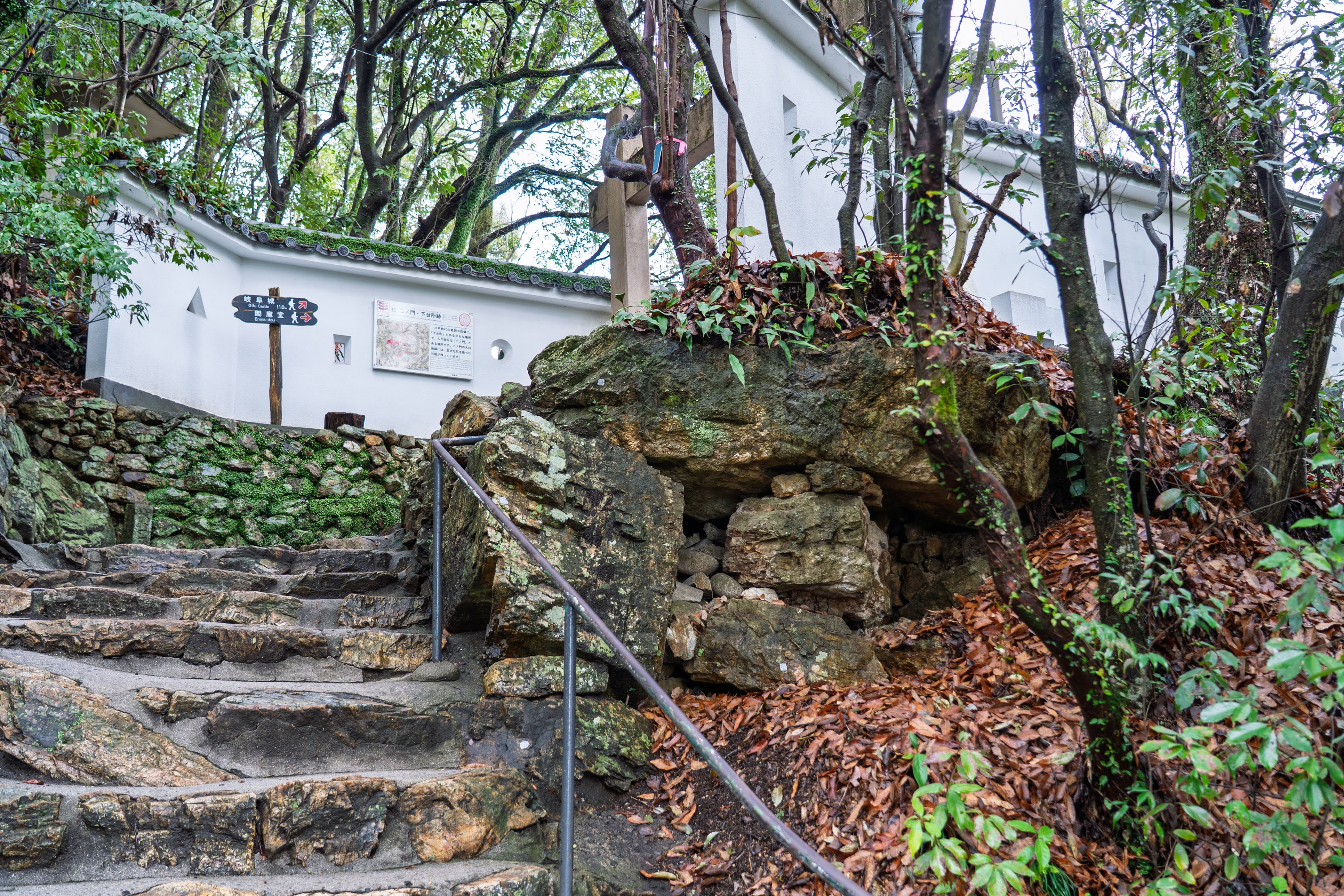 信長居館跡 斎藤道三の石垣や階段などの遺構では、